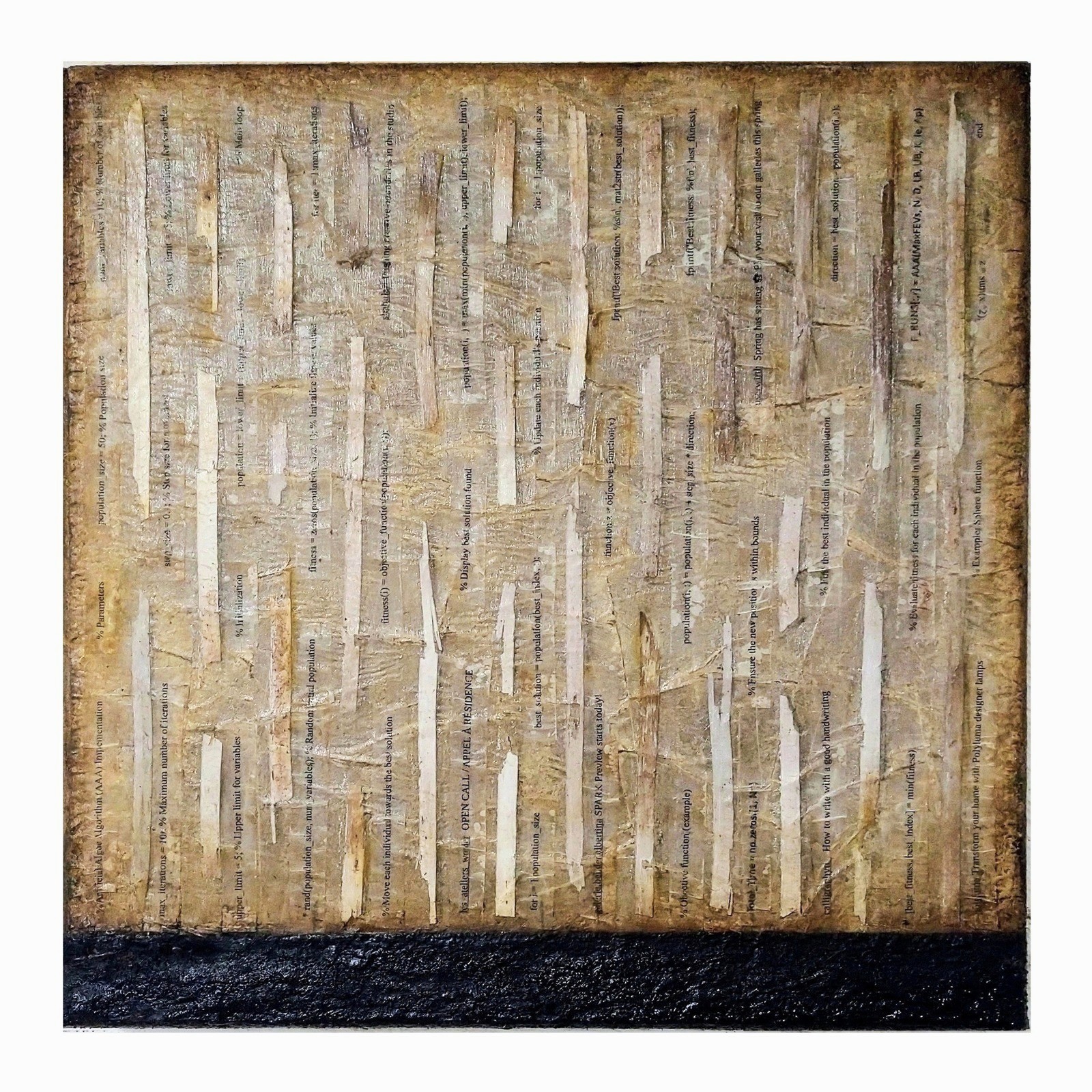 Mixed media, Collage, natural algae, tar, and algorithm codes on canvas