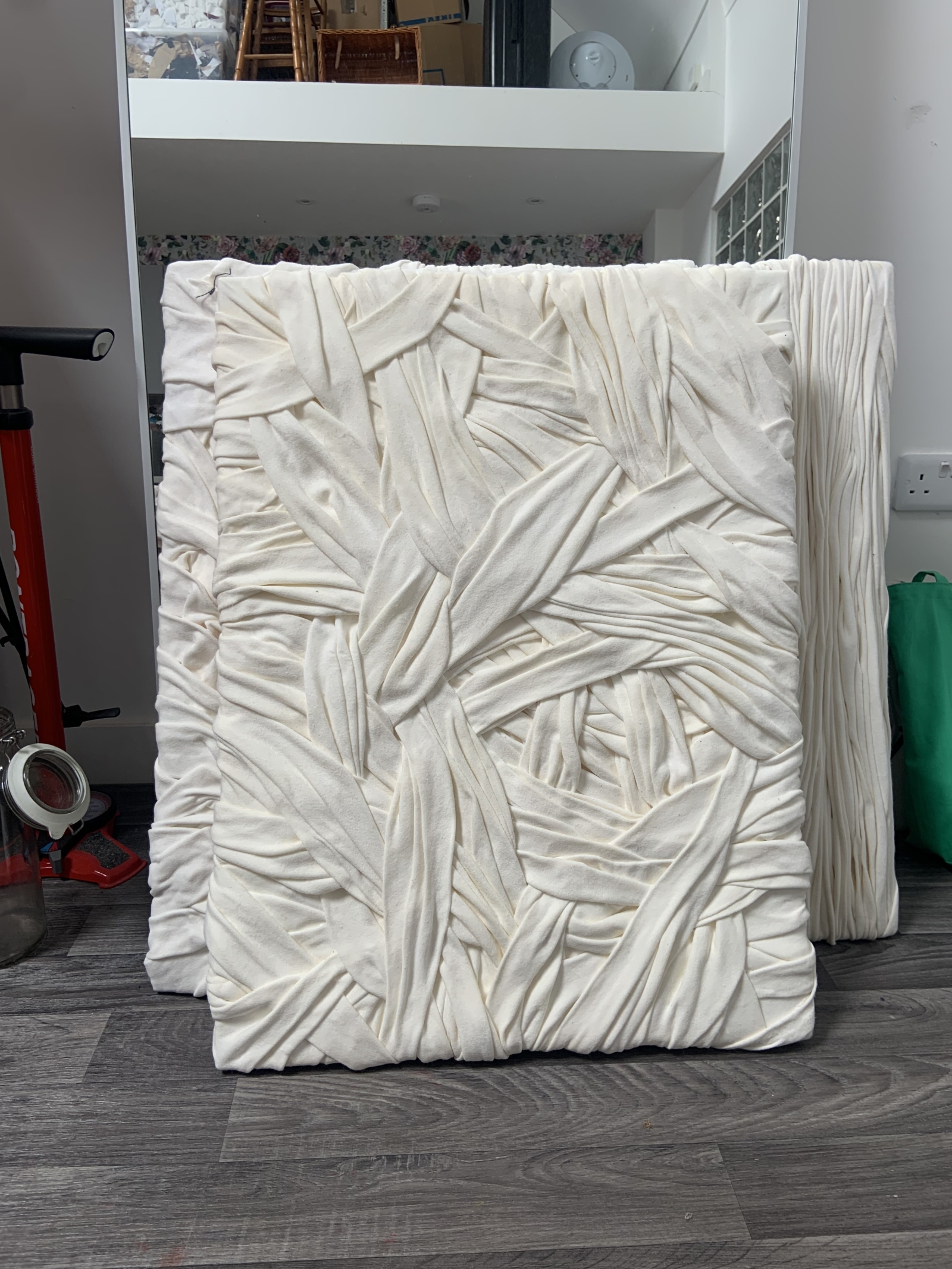 I used textile waste to create this artwork. I developed my technique using garment offcuts wrapping them together closely.
