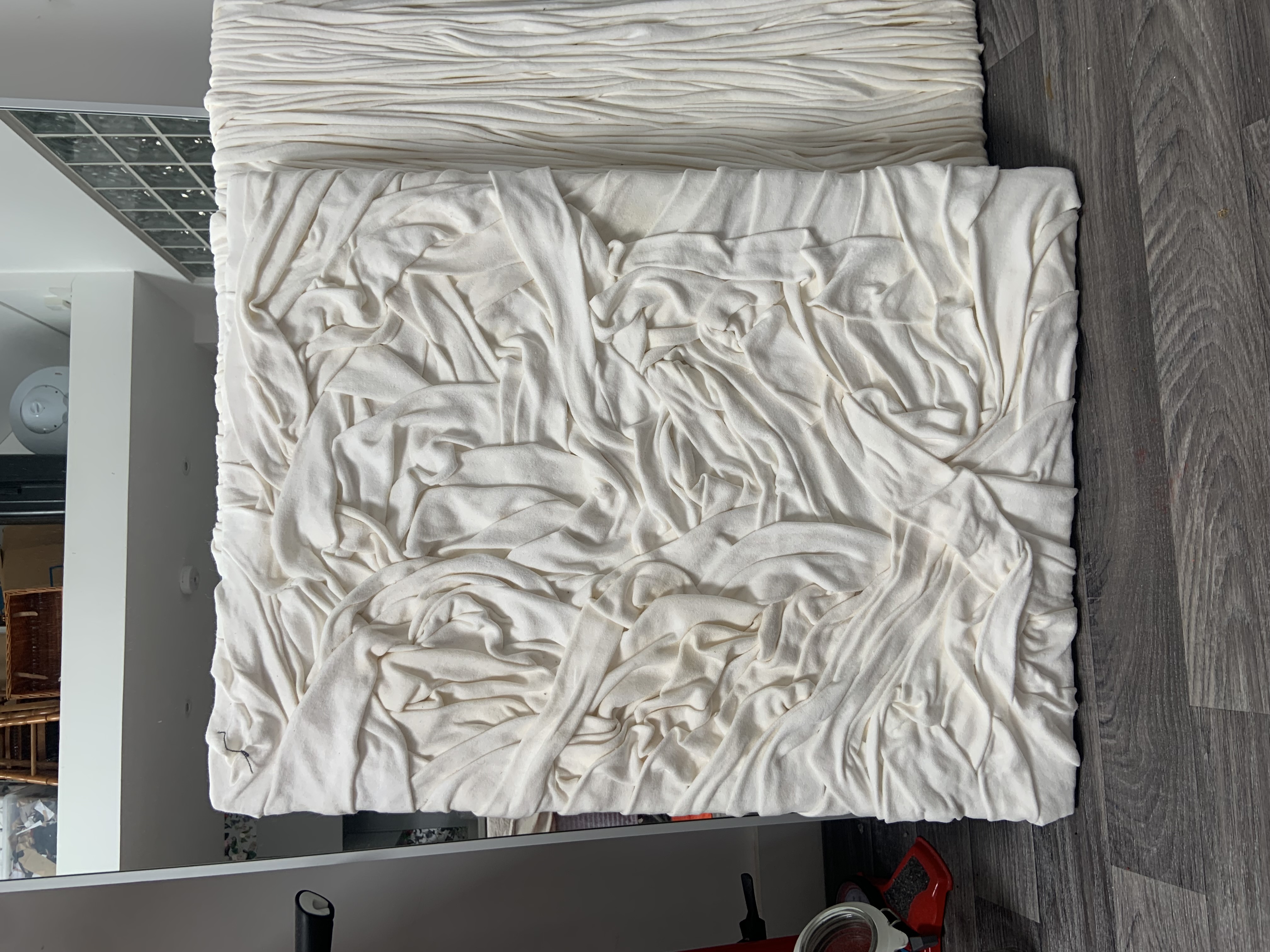 I used textile waste to create this artwork. I developed my technique using garment offcuts wrapping them together closely.