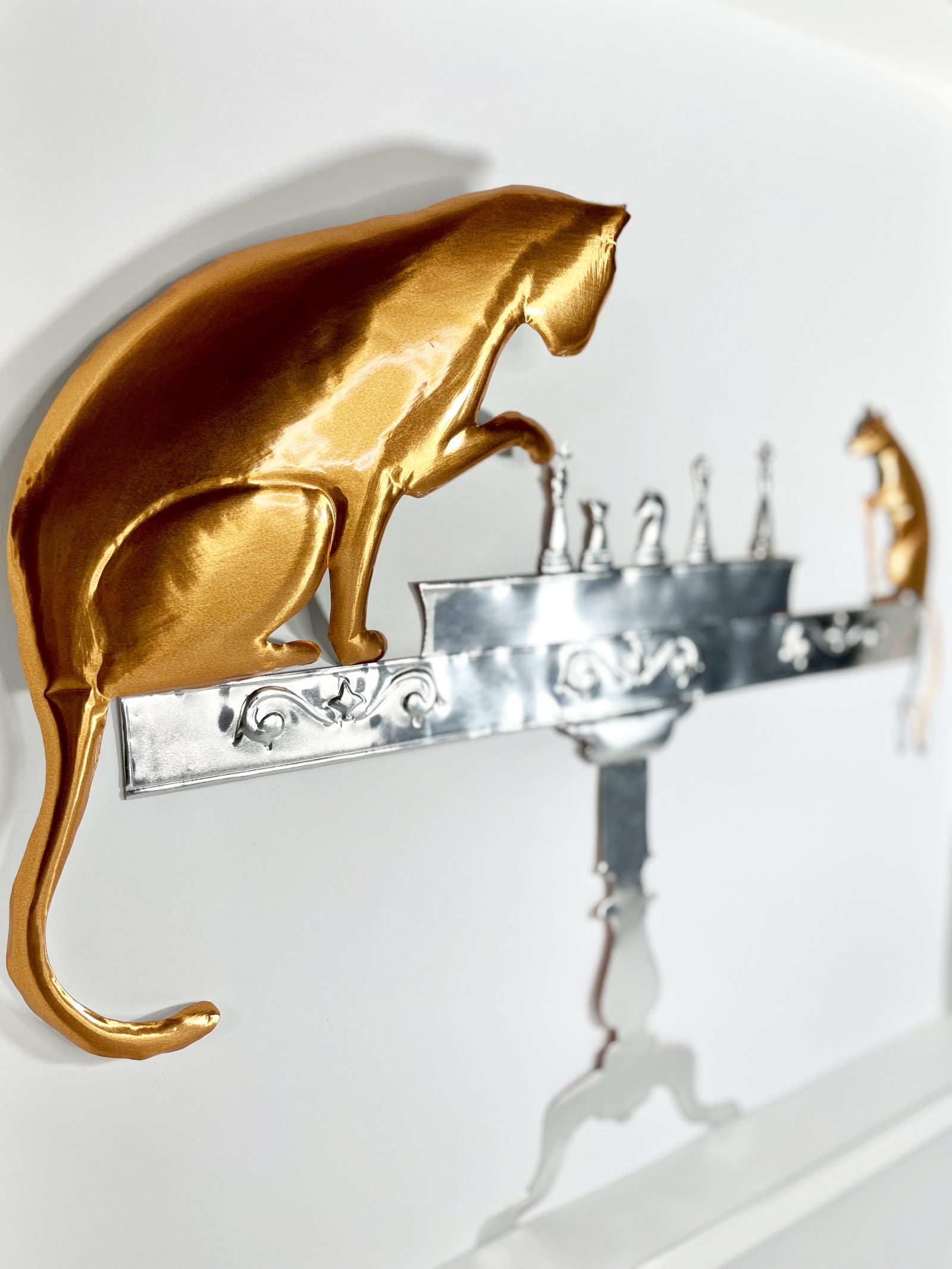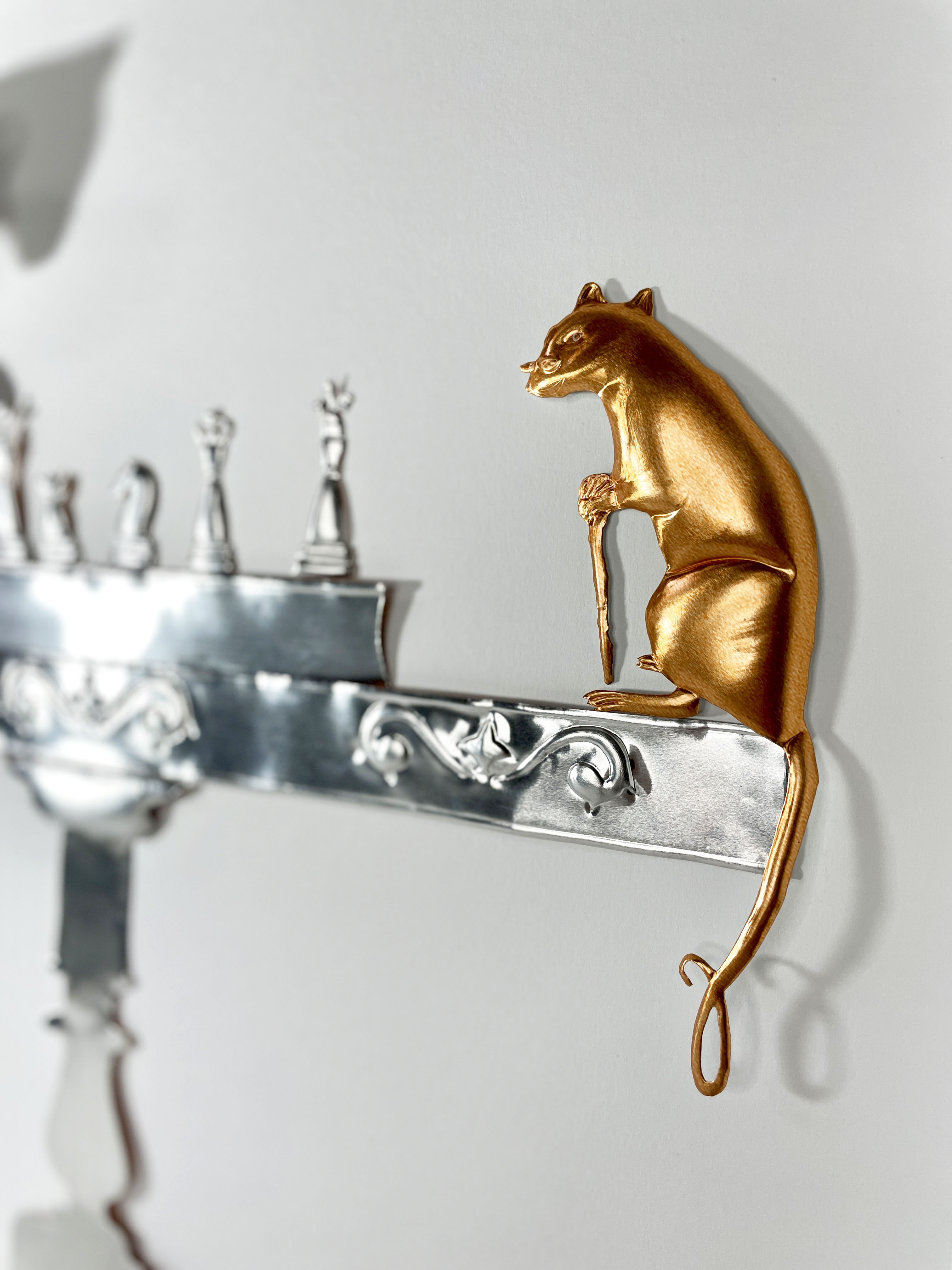 Scacco Matto, 2023. Sbalzo e cesello su alluminio, interamente realizzato a mano senza martello né punzoni.