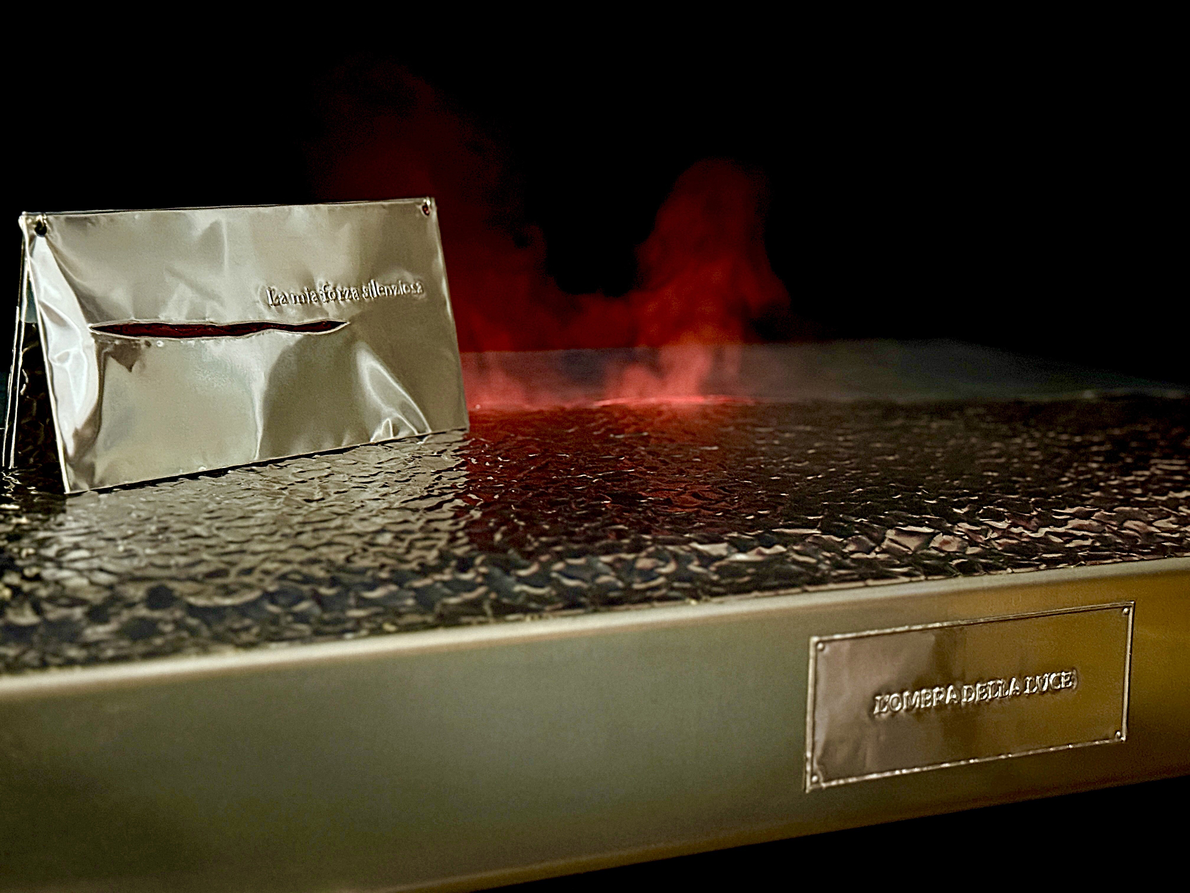 Sbalzo e cesello a mano su alluminio, resina e acrilico