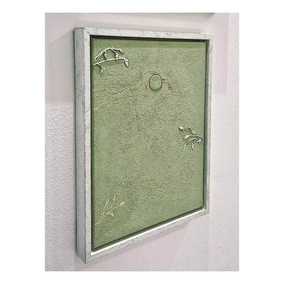 Acrylic, plaster and gold leaf on canvas 30 x 40 cm, 12 × 16 inches (Framed work)
