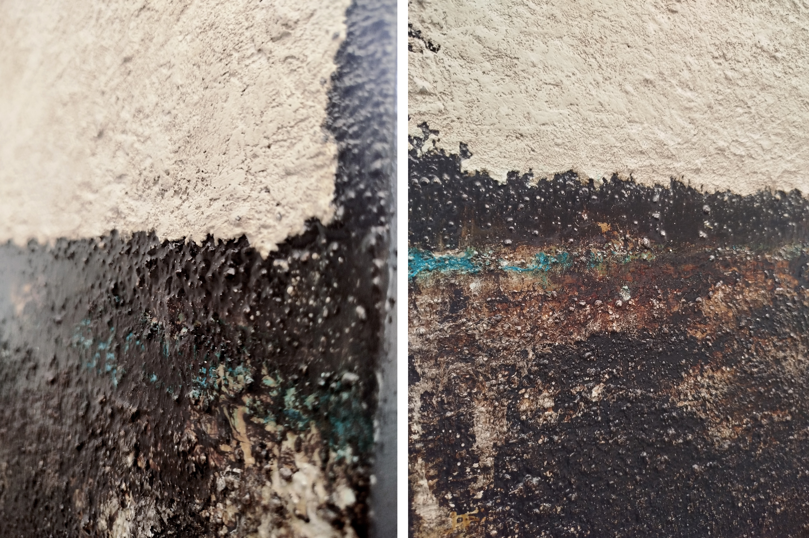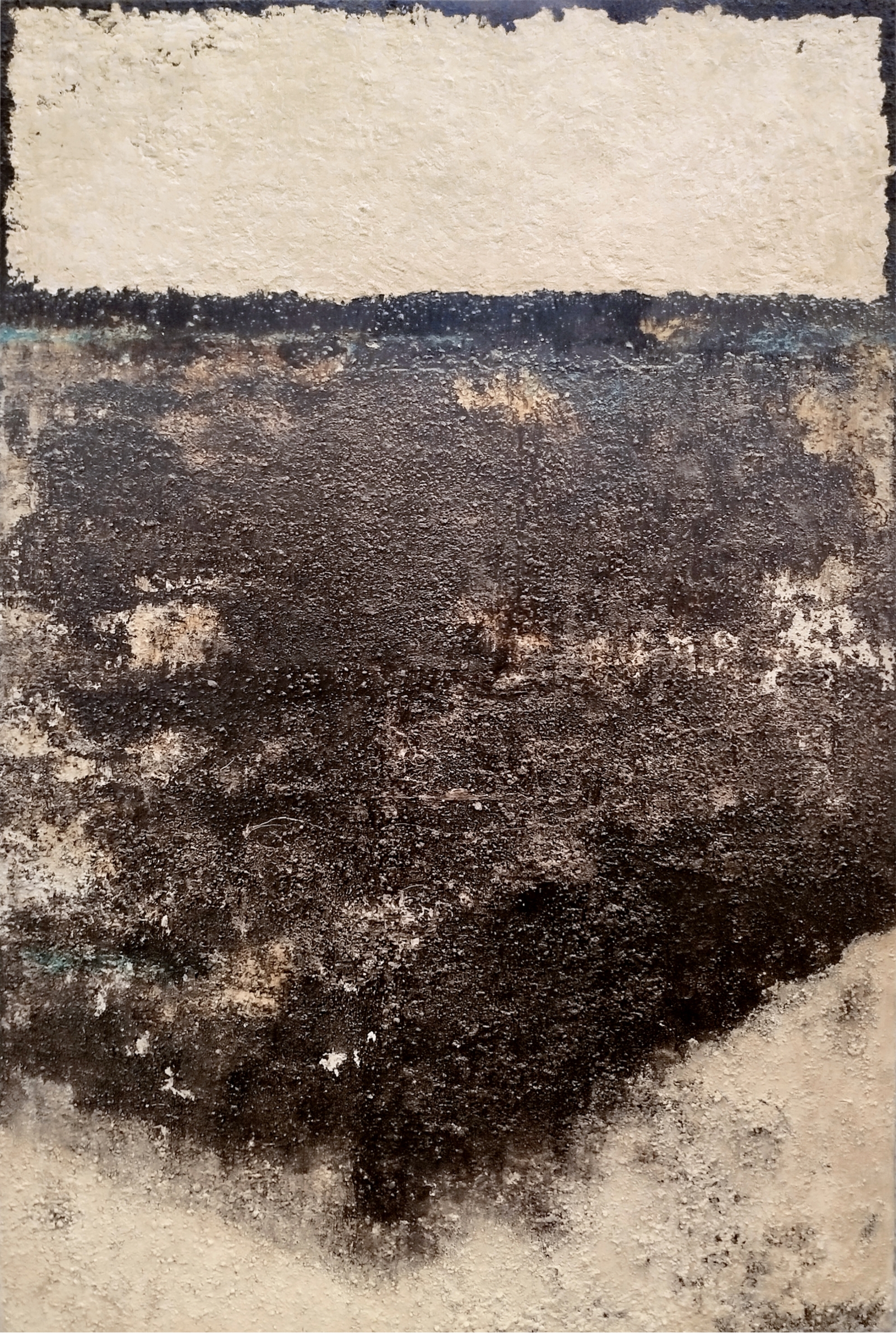 Painting on canvas. Mediums and materials: acrylic, plaster, household paint, enamel, bitumen of judea, sand.. Organic texture.