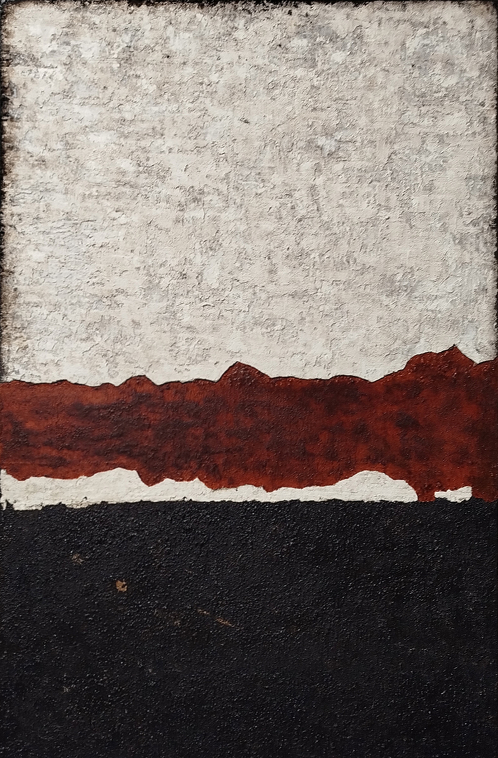 Painting on canvas. Mediums and materials: acrylic, plaster, household paint, enamel, bitumen of judea, sand.. Organic texture.