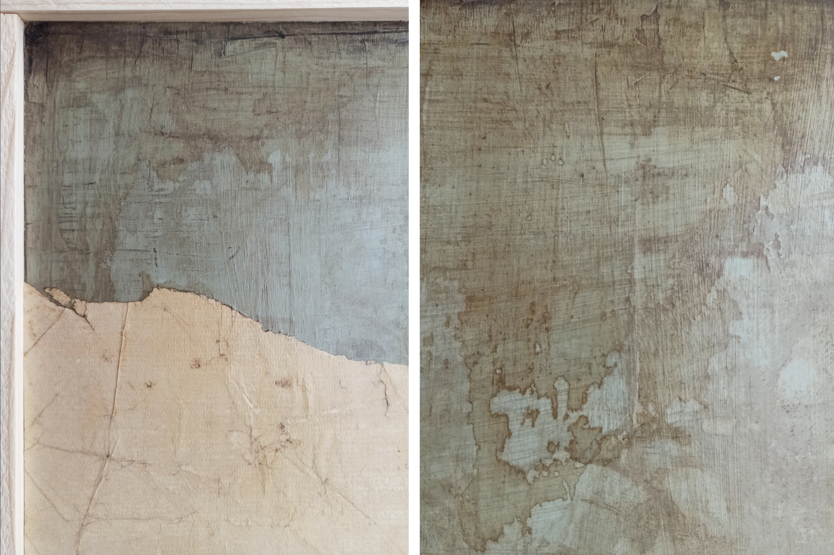 Painting on wood. Mixed media. Collage Mediums and materials: acrylic, plaster, household paint, enamel, paper...