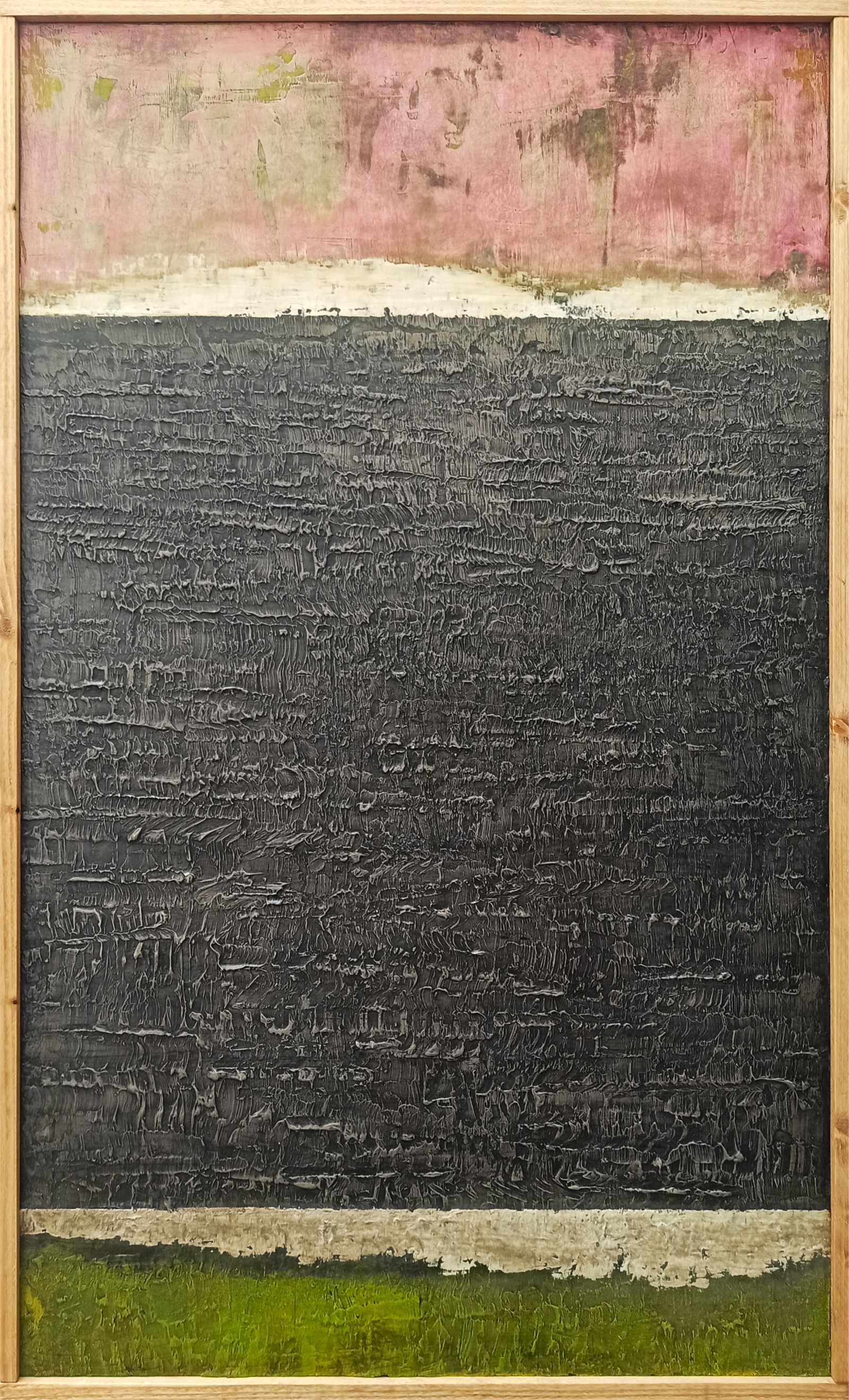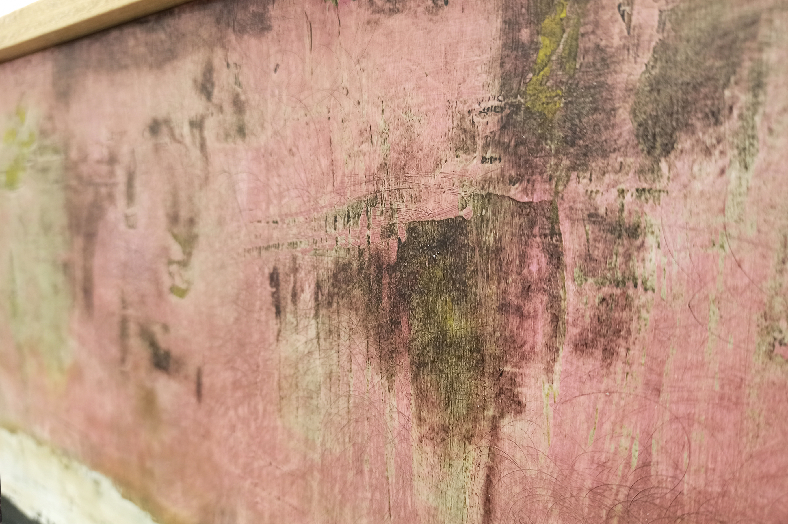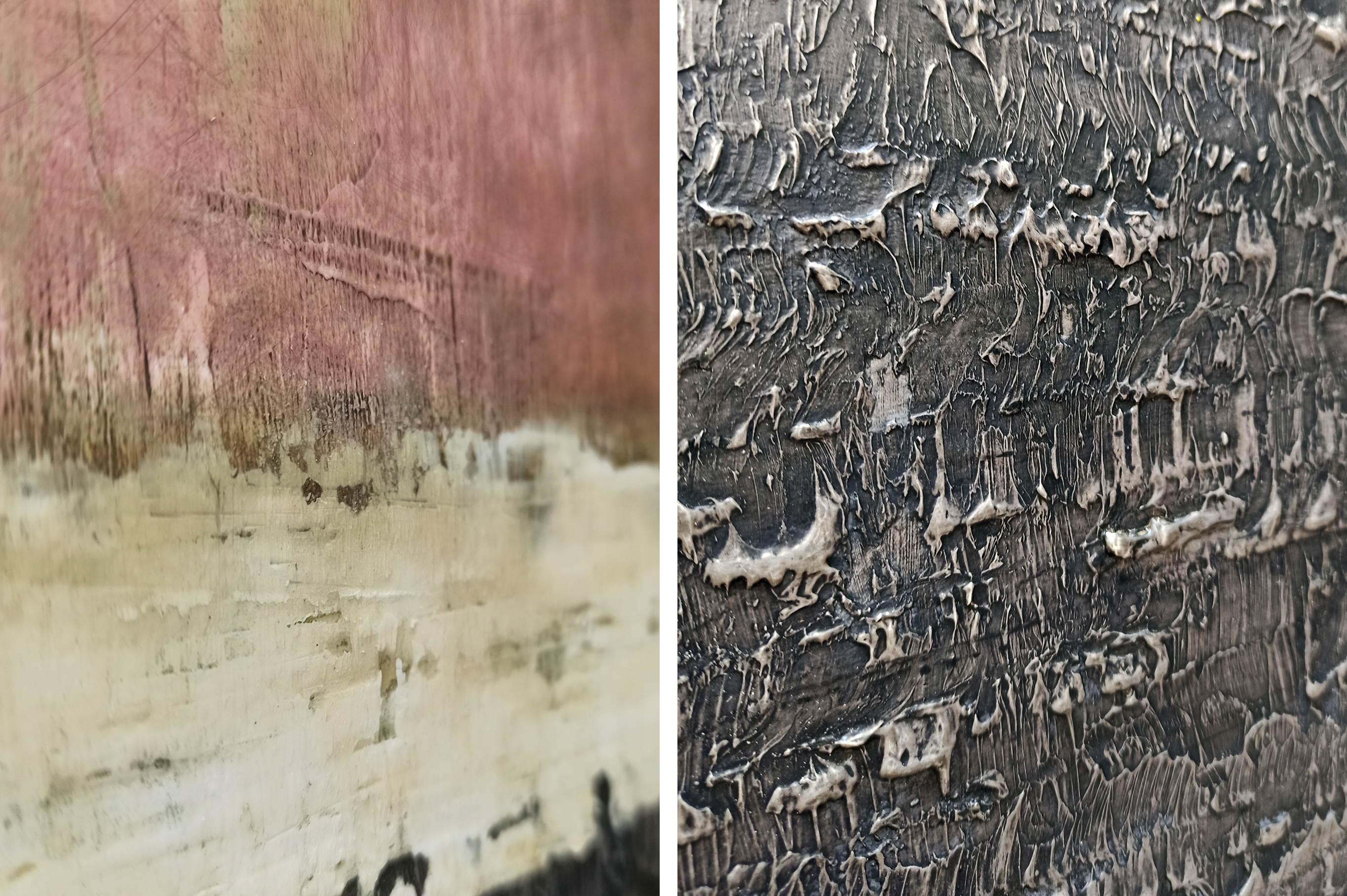 Painting on wood. Mediums and materials: acrylic, plaster, household paint, enamel, bitumen of judea,.. Organic texture.