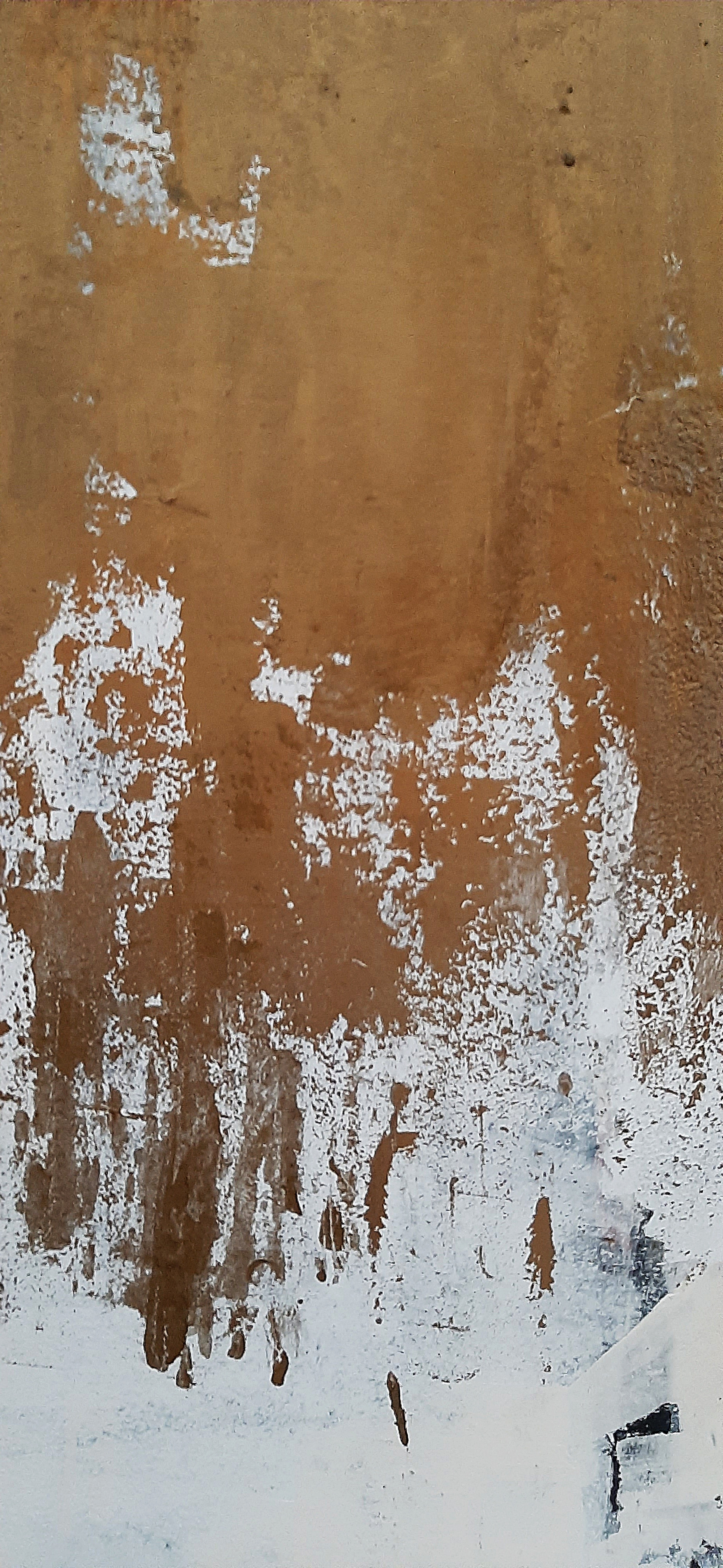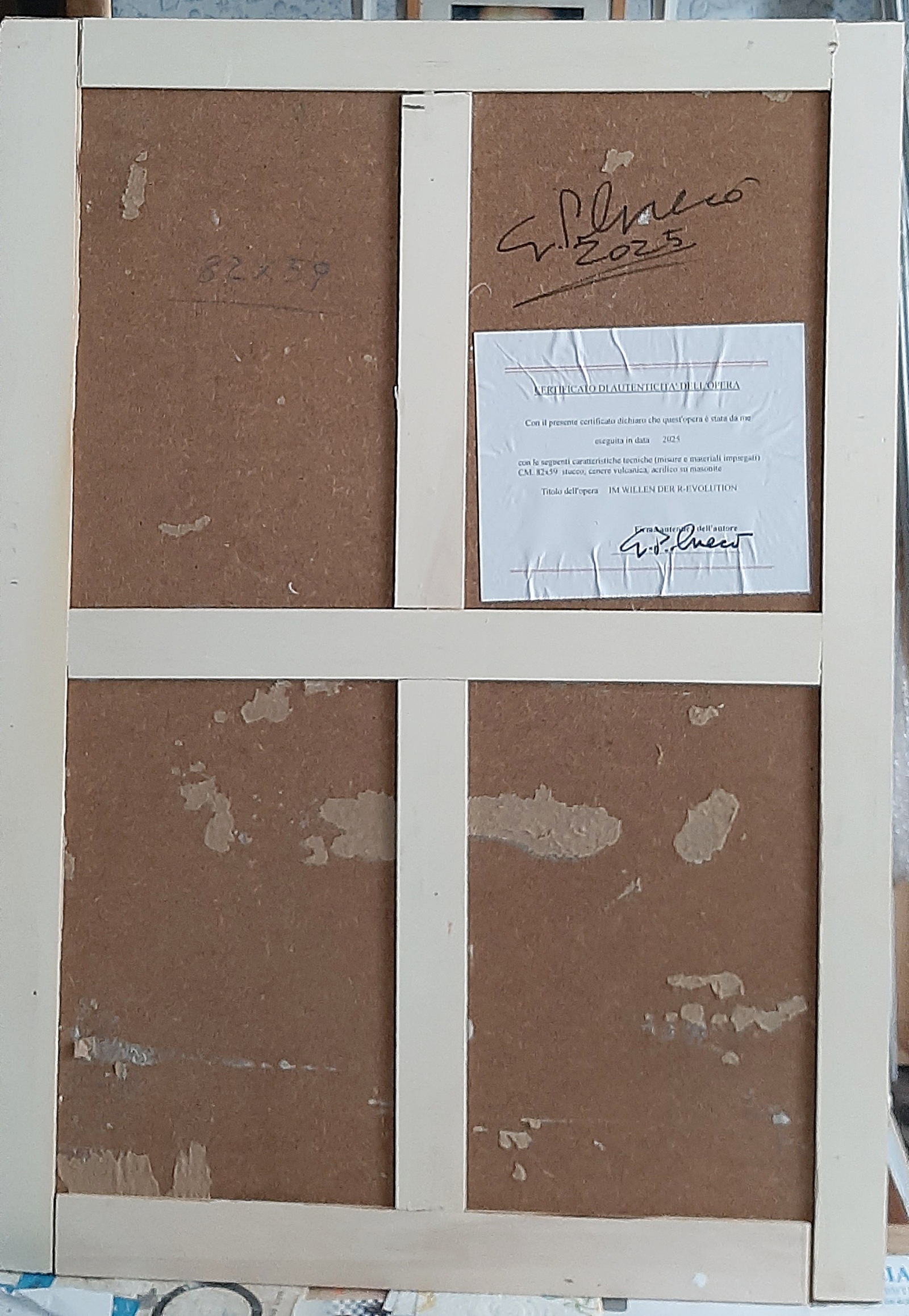 vernice oro, acrylic, stucco, volcanic ash on masonite con cornice