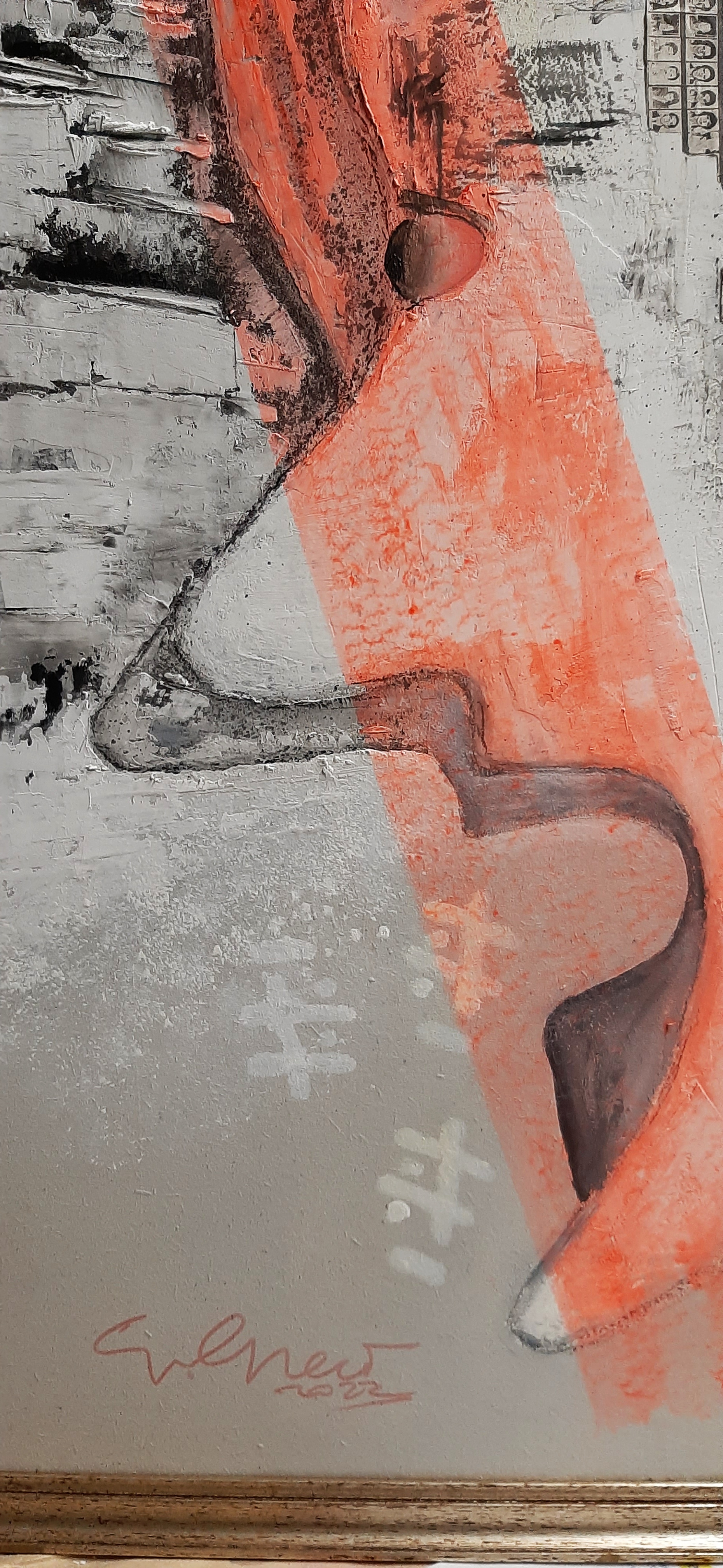 acrylic, stucco, collage on masonite - framed