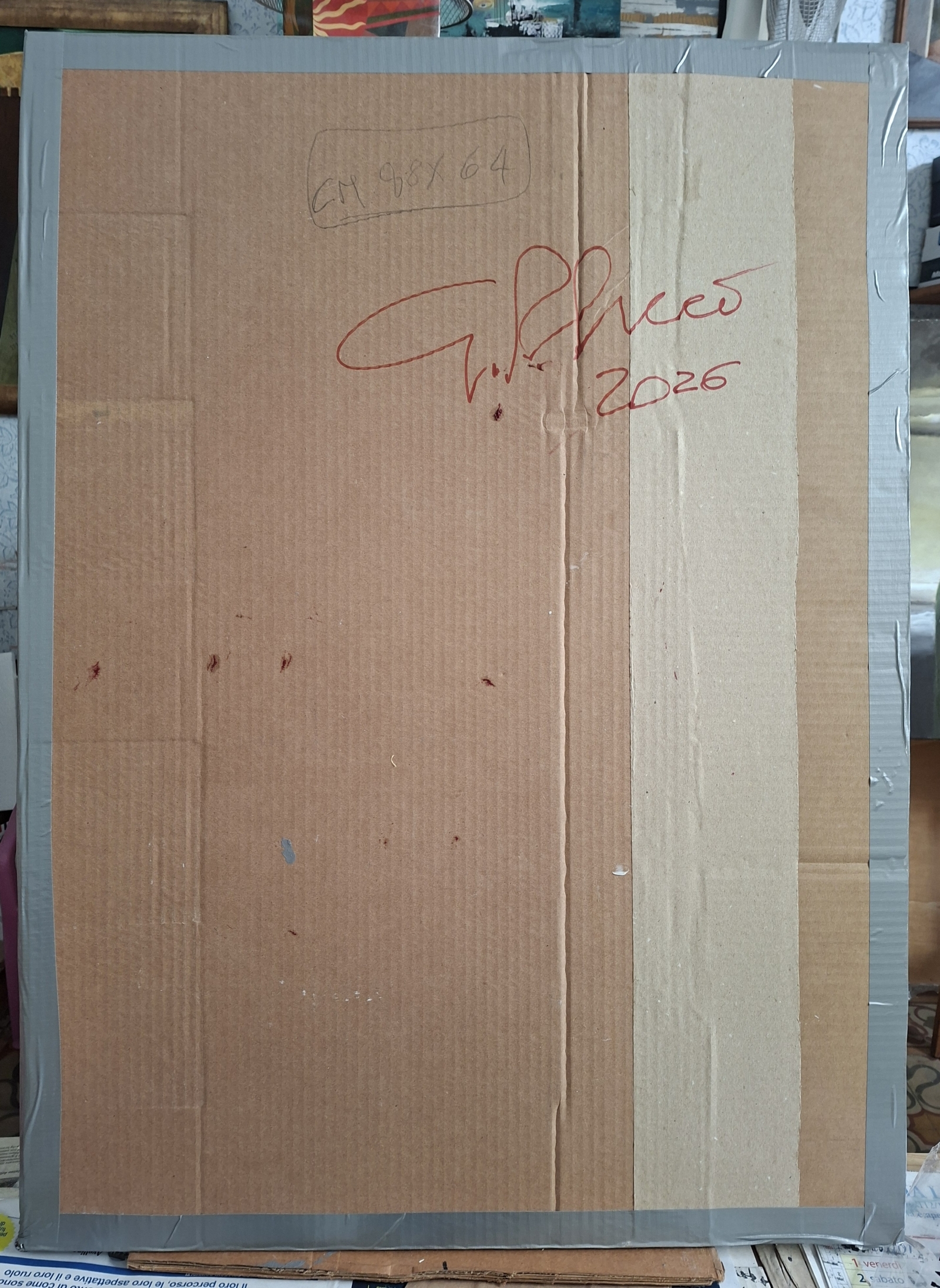 acrylic, stucco, gold varnish, volcanic ash (Etna) on cardboard thin 1.5 cm.