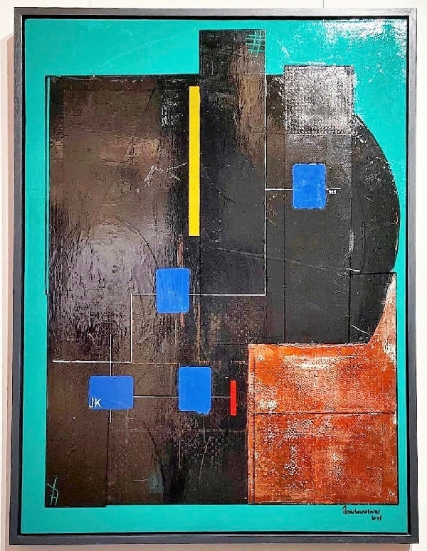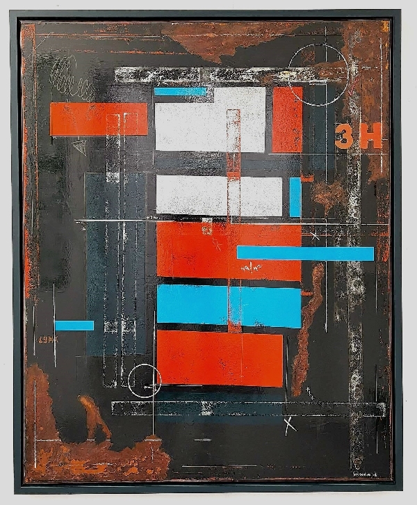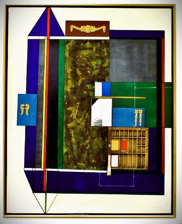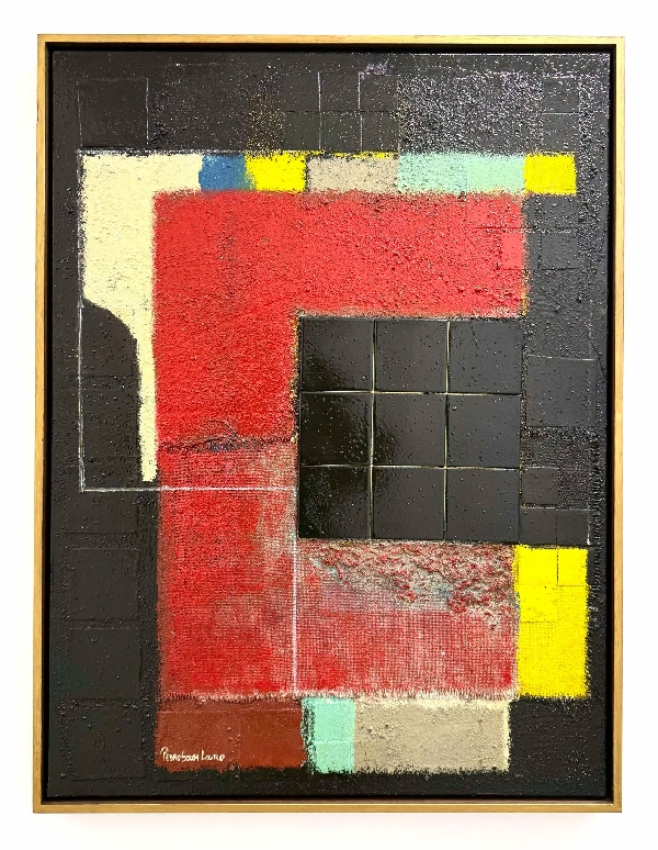 Mix media, objects fixed, copper powders, cement, tiles, paper framed