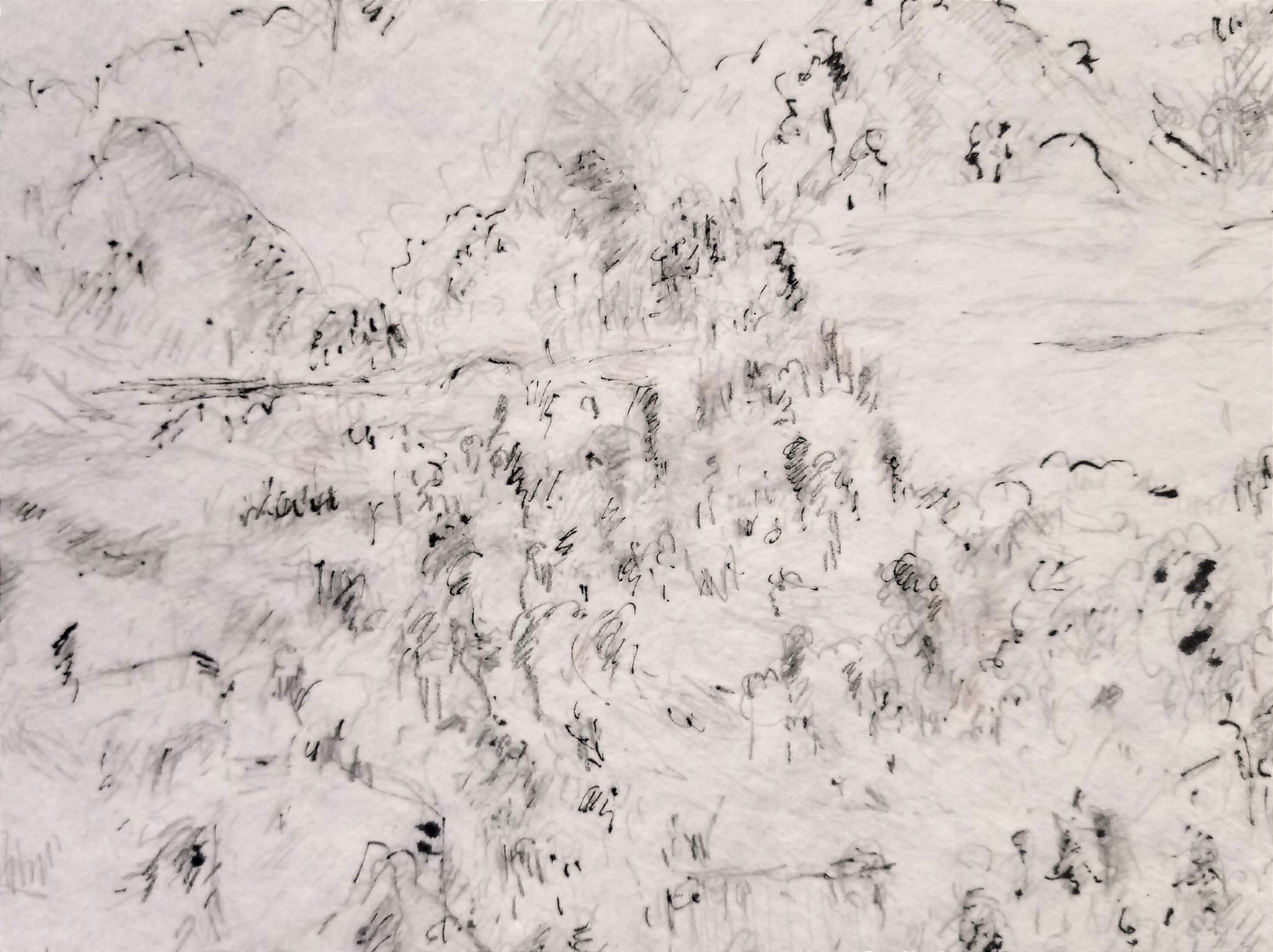 Crayon et un peu d'encre de Chine sur papier synthétique translucide au PH neutre. Ce dessin a une oeuvre "jumeau" aux crayons de couleurs. Le dessin sera envoyé dans un rouleau de façon bien protégé.