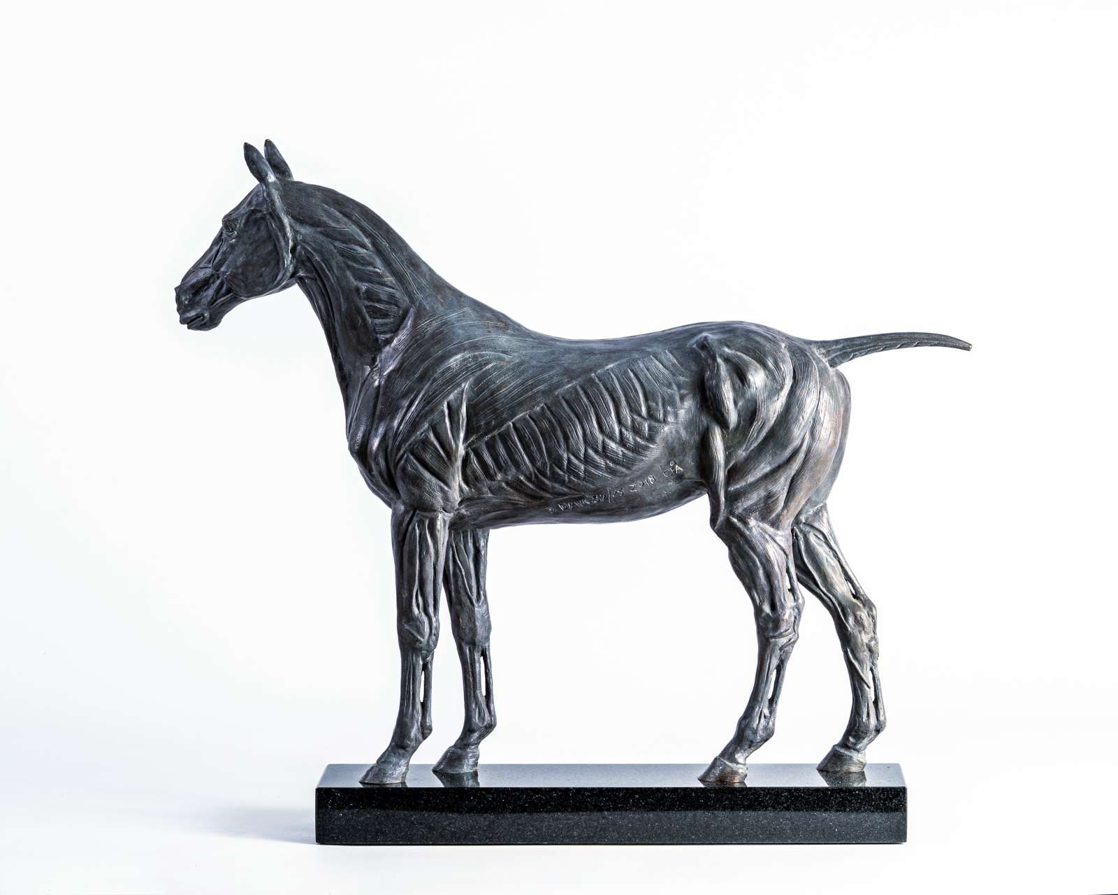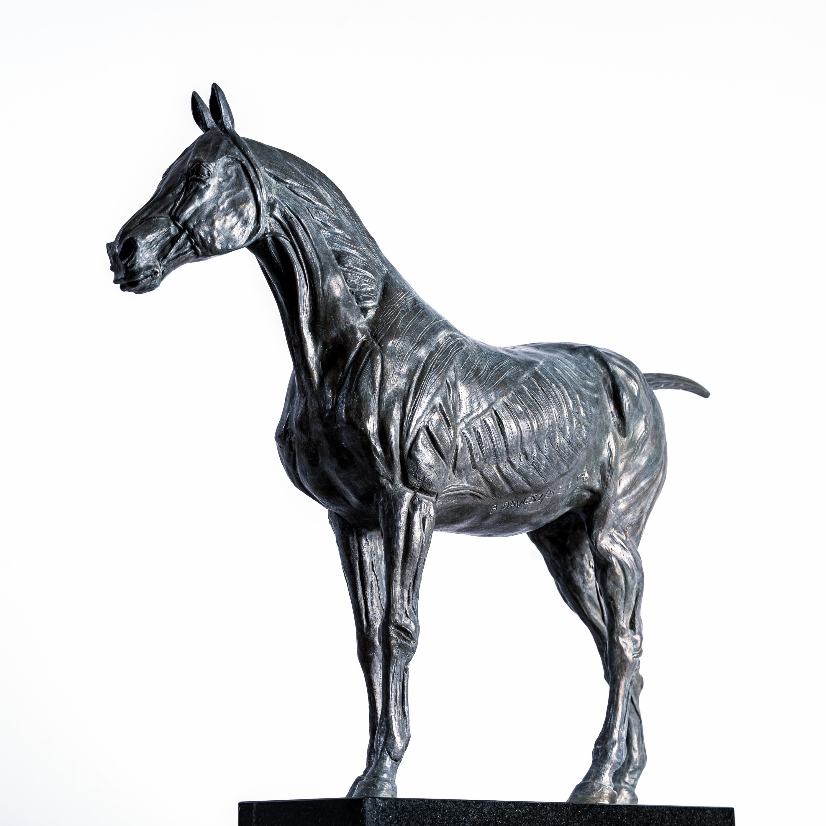Passionate about equine anatomy, I modelled this bronze hunter/thoroughbred type horse (2/25) in a way that exhibits the beauty of its skeletal shape and musculature, where anatomy and artistic interpretation work together in harmony.