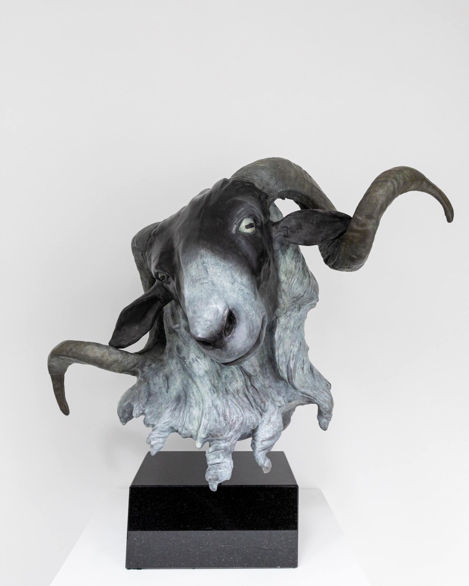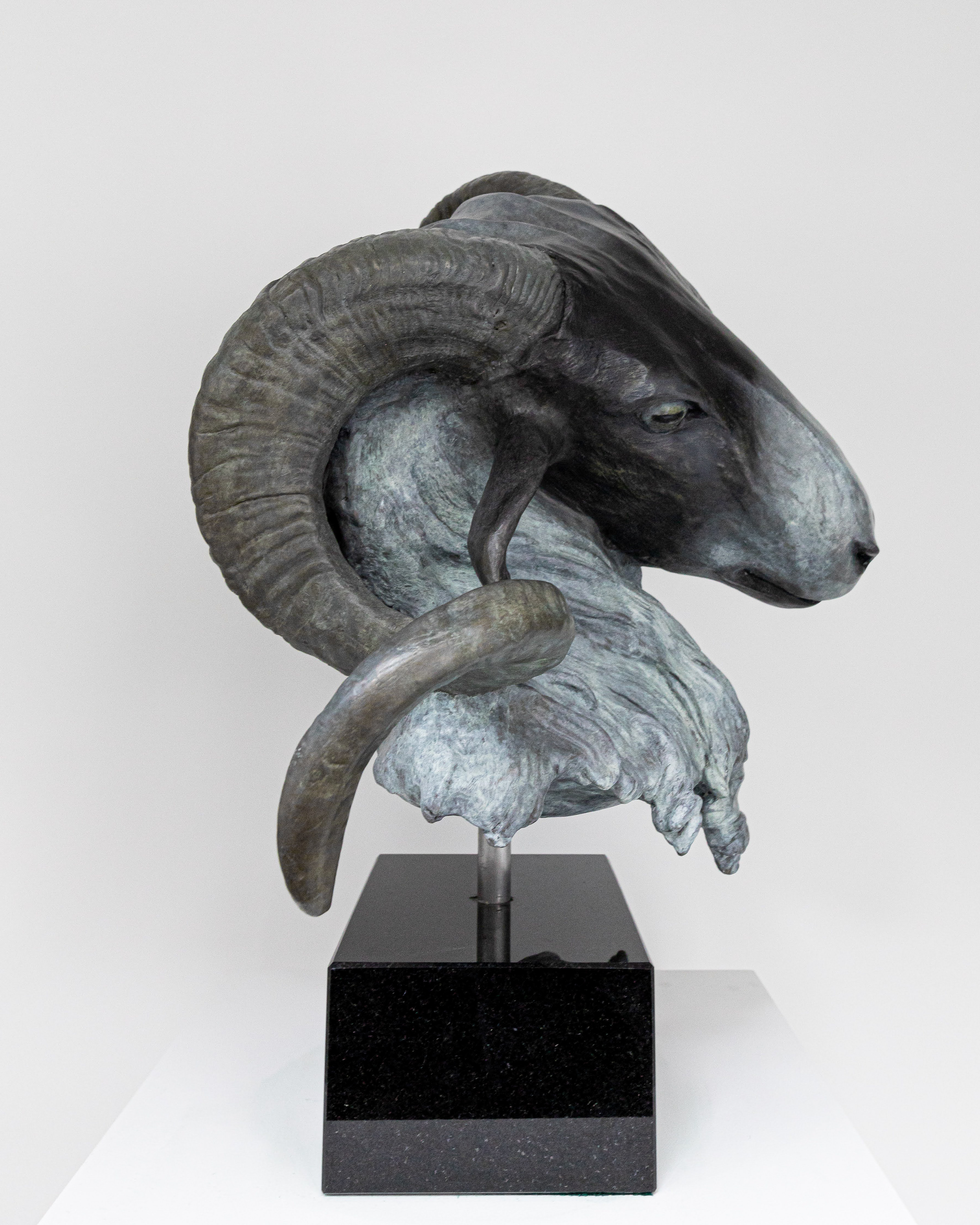Modelled in clay and cast in bronze 1/9 this ram with its magnificent horns spiralling wildy conjure images of the rugged Scottish landscape. 12 weeks from confirmation of order to dispatch for shipping.