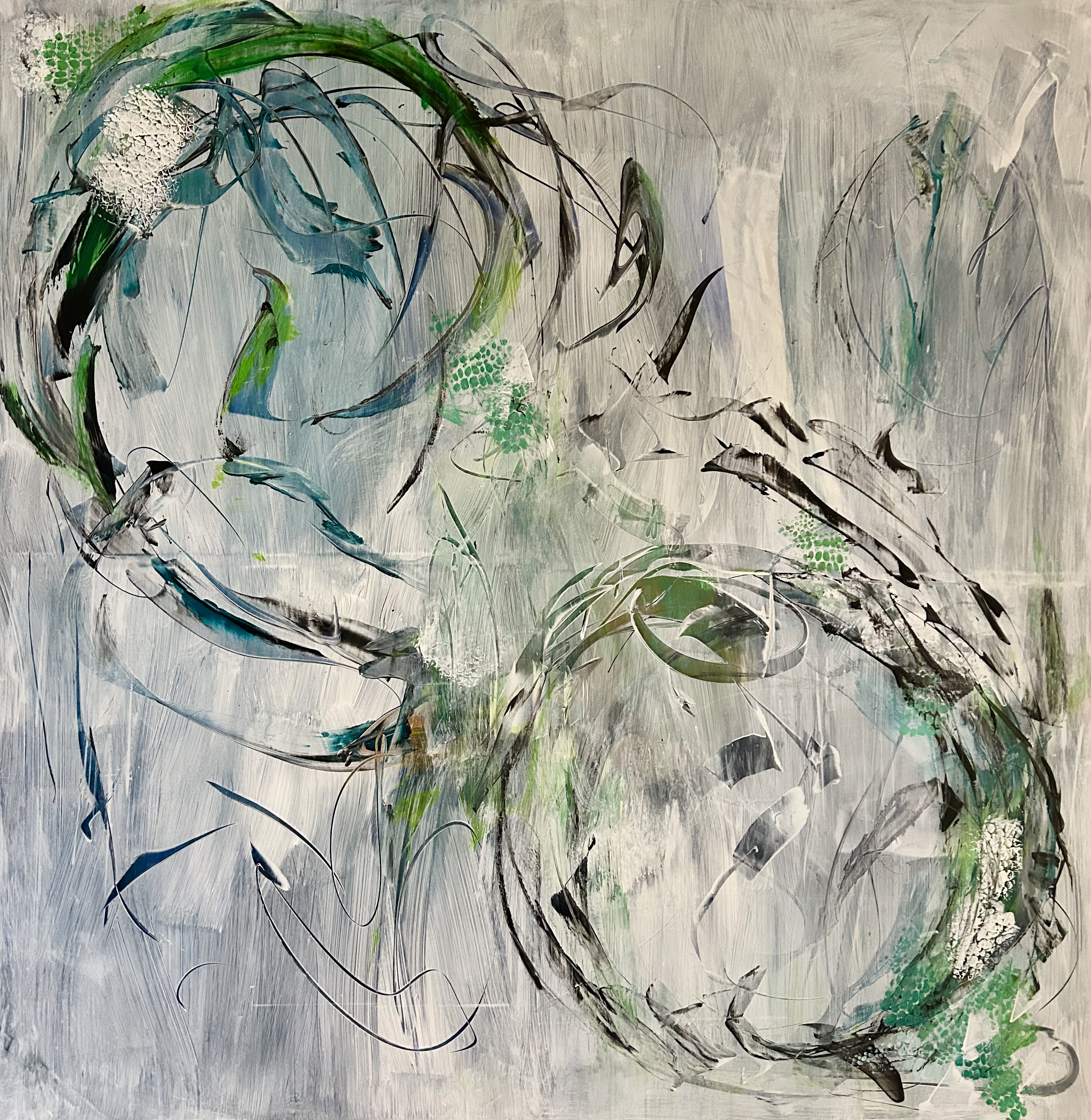 My pictorial gesture is instinctive and free, unfolding in dance-like movements, yet guided by a conscious balance of color, rhythm, and form. I work with high-quality acrylics and custom-mixed pigments on professionally stretched canvas, ensuring durability while allowing full freedom of expression. Within this process, intuition and discipline coexist.