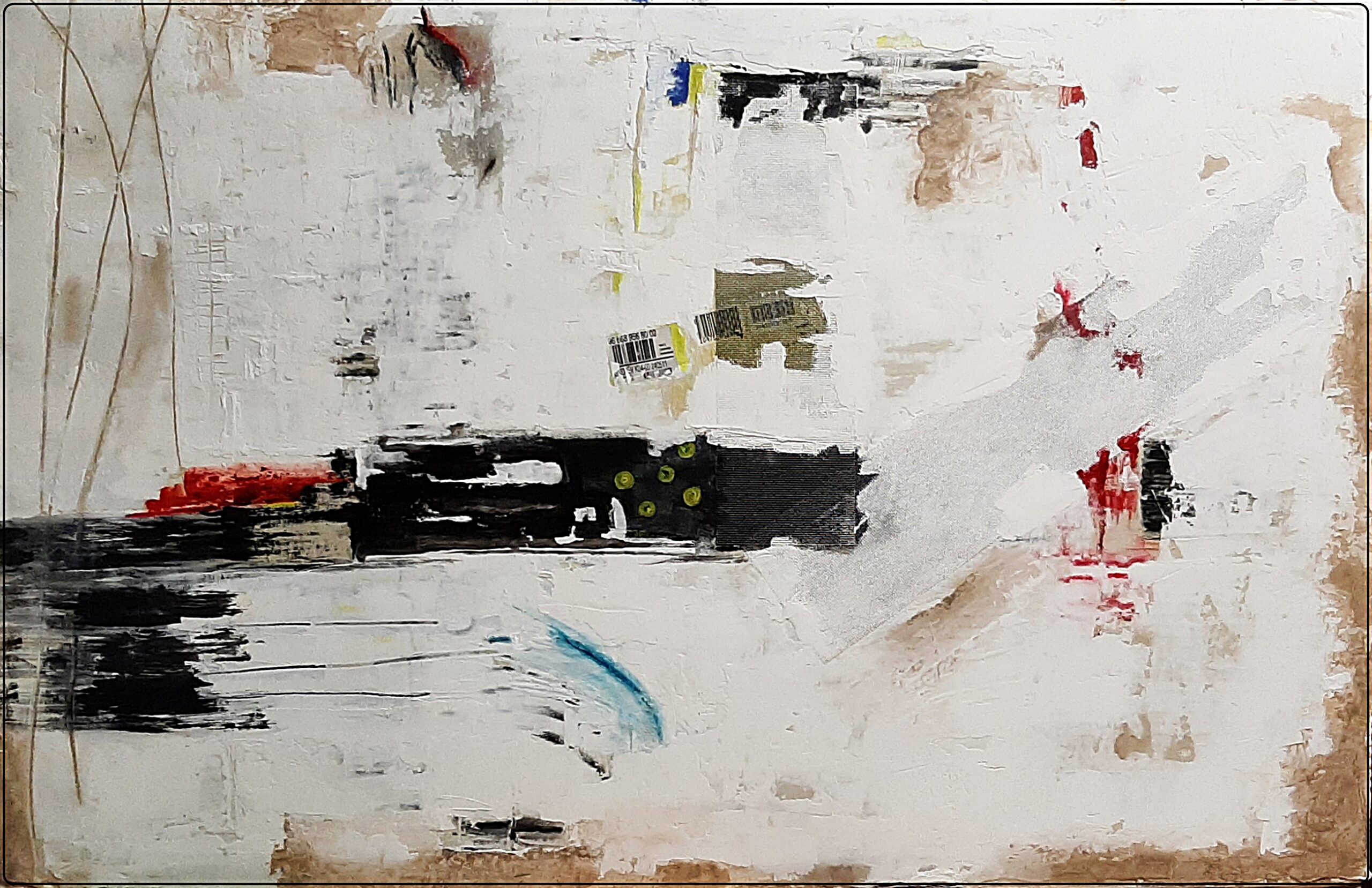 acrylic, stucco on cardboard –