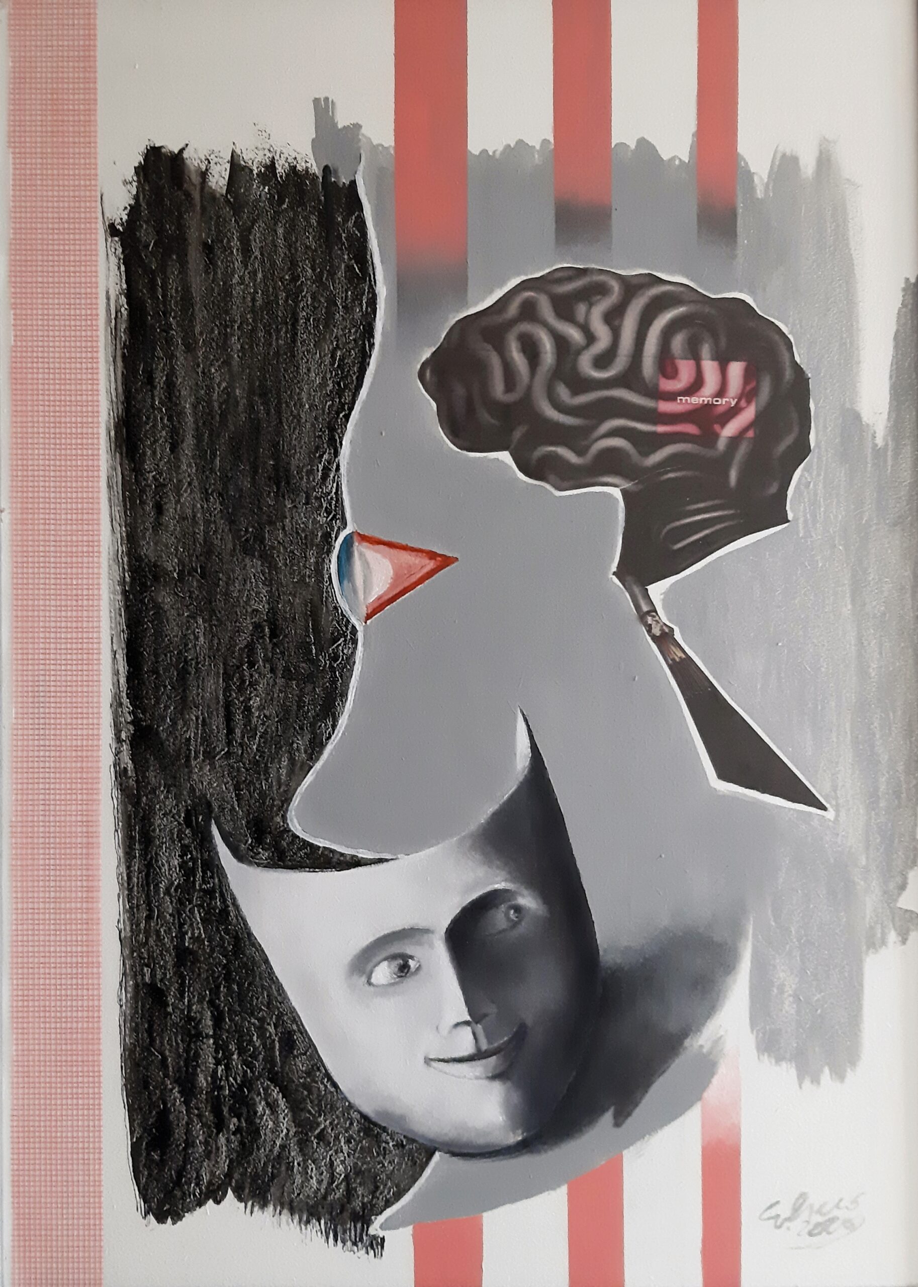 acrylic, stucco, polyester net on wood panel